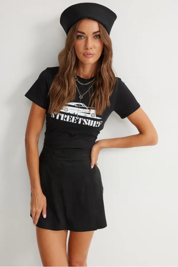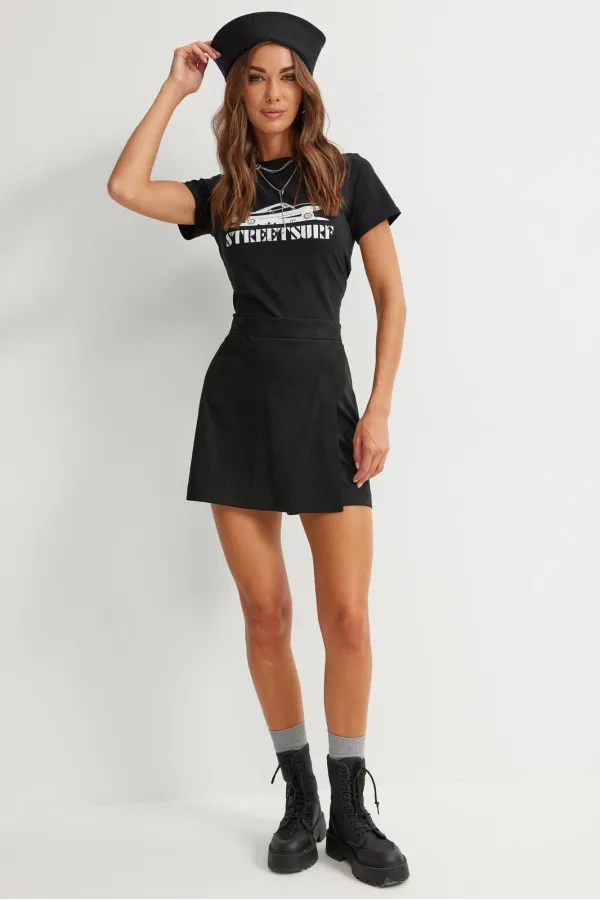 Прямые шорты с отлетной деталью по переду, имитирующей юбку, с двумя декоративными пуговицами. По верху шорт притачной пояс с застежкой на потайную молнию в боковом шве. На задних половинках вытачки. Обращаем ваше внимание, что фурнитура может отличаться от фото.