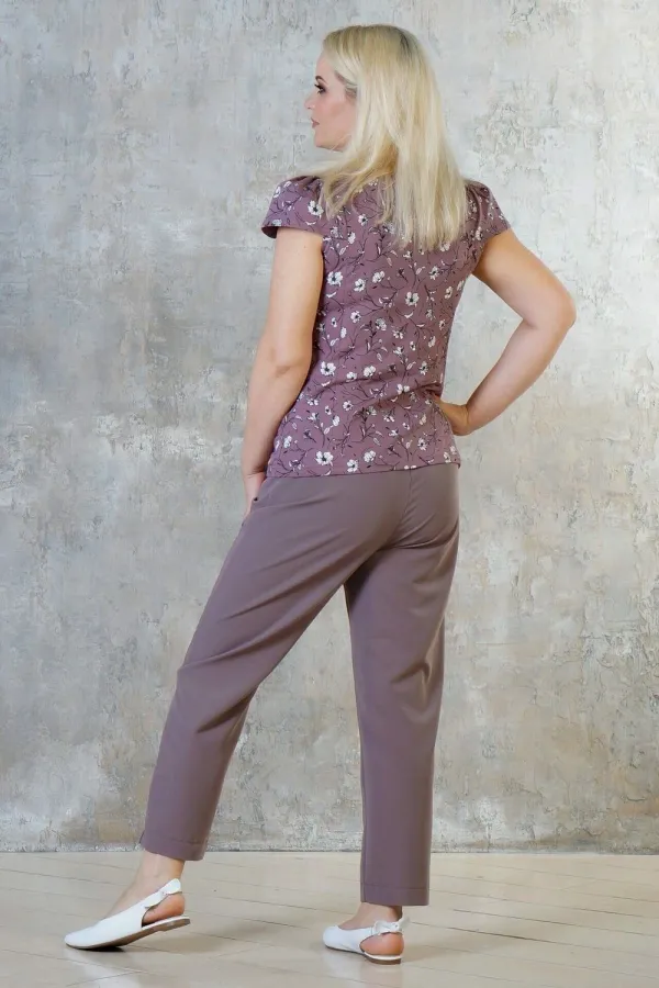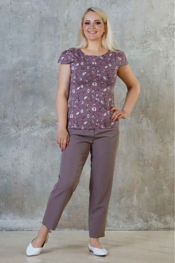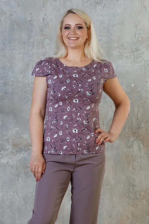 Стильная женская футболка от компании Malina. Модель полуприлегающего силуэта, выполнена из трикотажного полотна кофейного цвета с принтом. Круглый вырез горловины с защипом. Рукава втачные, короткие. Без застёжки. ... Читать далее...
