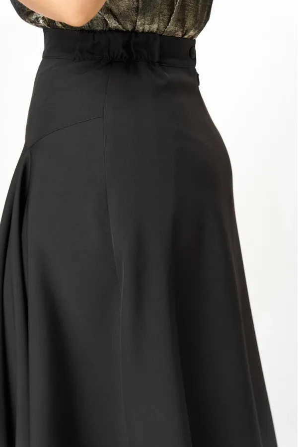 Юбка силуэта трапеция, длиной макси, без подкладки. Юбка выполнена из однотонной ткани плательно-костюмной группы.