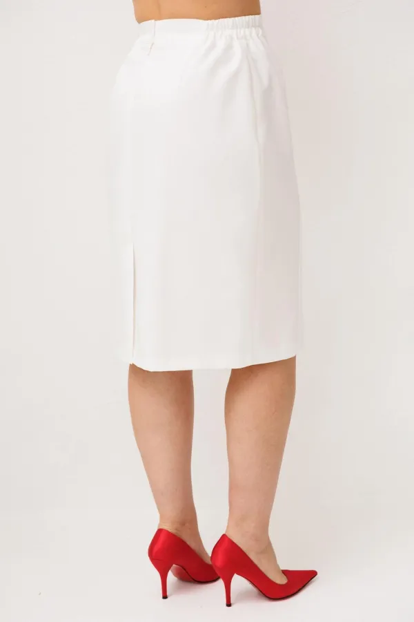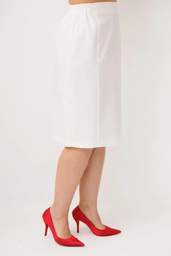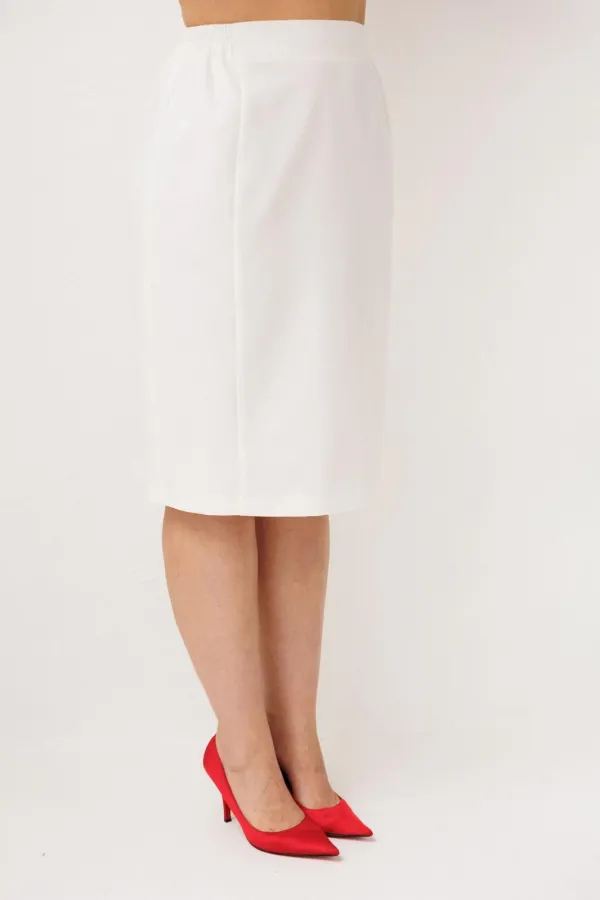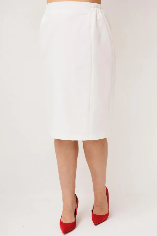 Юбка в нежном оттенке «лебедь» становится естественным продолжением образа, создавая ощущение лёгкости, женственности и утончённой собранности. Аккуратные рельефы по переду формируют изящный силуэт, мягко подчеркивая фигуру и добавляя образу стройности и элегантности. Притачной пояс с деликатной резинкой по бокам обеспечивает комфортную посадку, позволяя чувствовать себя уверенно и свободно в течение всего дня, а подкладка делает юбку особенно приятной к телу и завершённой по ощущению.