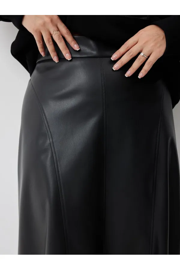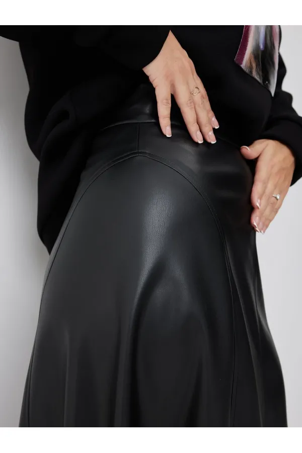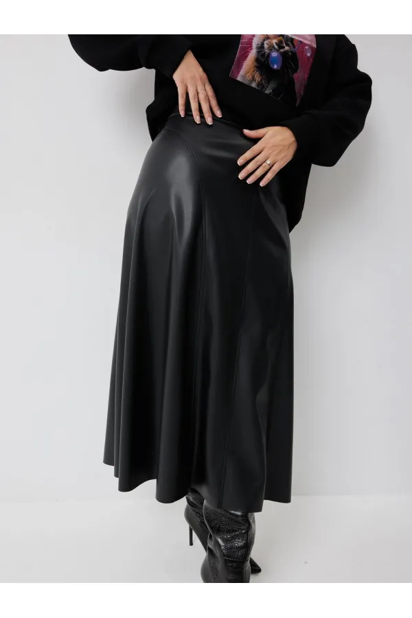 Представляем вам расклешенную юбку из экокожи макси длины - идеальное решение для стильных образов в любую погоду. Свободный расклешенный крой подходит для любого типа фигуры и отлично подчеркивает силуэт. Молния в среднем шве заднего полотнища. Юбка без подкладки с притачным поясом. Юбка прекрасно комбинируется как с обувью на каблуке, так и с кроссовками для более неформальных и активных мероприятий. Сочетайте юбку с классической рубашкой, блузкой добавив пиджак или кардиган, также она отлично сочетается со свитером, свитшотом или джемпером.