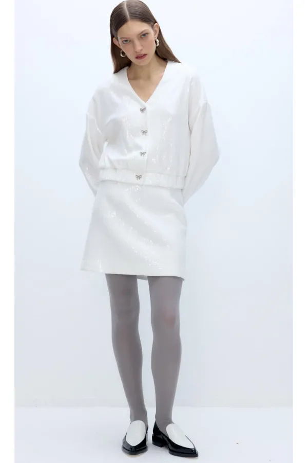 Мини-юбка из велюровой ткани в пайетки.