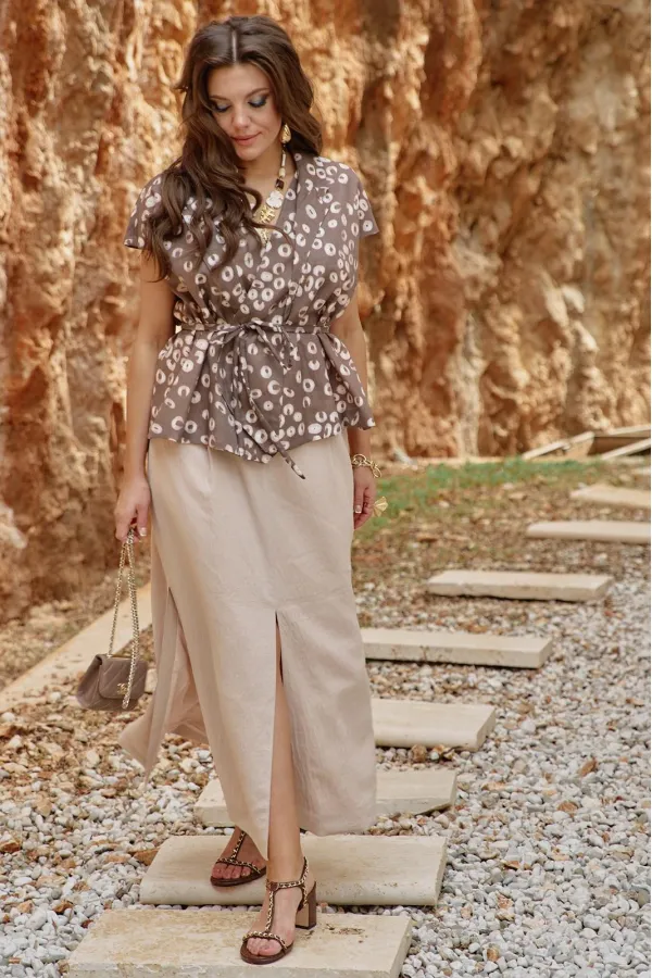 Юбка А-силуэта бежевом оттенке в ткани с лёгкой фактурой— это выбор женщины, которая: ценит элегантность в движении, любит тактильные ощущения — наслаждается прикосновением ткани, предпочитает мягкую женственность, облад... Читать далее...