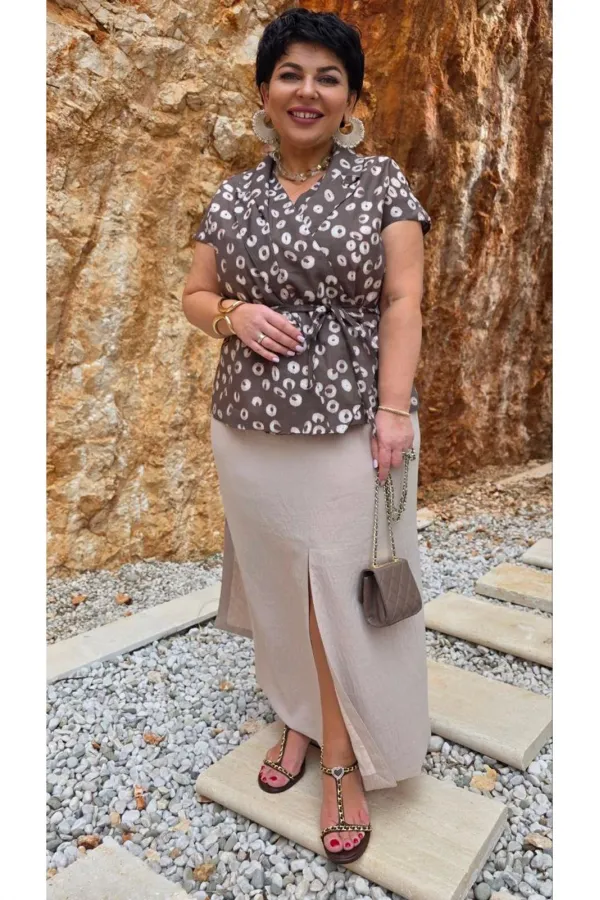 Юбка А-силуэта бежевом оттенке в ткани с лёгкой фактурой— это выбор женщины, которая: ценит элегантность в движении, любит тактильные ощущения — наслаждается прикосновением ткани, предпочитает мягкую женственность, обладает вкусом к деталям, не боится быть заметной — но делает это изящно. В мире, где часто приходится выбирать между комфортом и стилем, эта юбка предлагает и то, и другое — свободу движения и утончённость линий, практичность кроя и художественность фактуры.