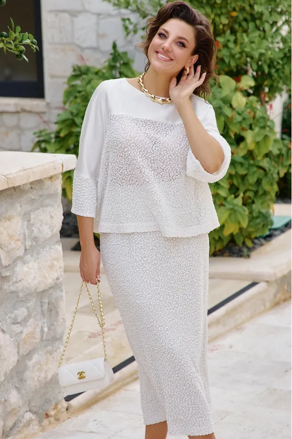Юбка прилегающего силуэта прямого кроя, немного заужена к низу из трикотажа-букле с притачным поясом-резинкой, длина миди за колено. Юбка хорошо тянется она на подкладке телесного цвета, что выгодно подчеркивает фактур... Читать далее...