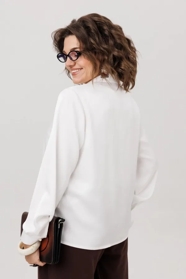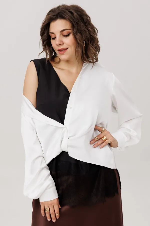 Эта рубашка создана стать главной героиней вашего гардероба. Она с лёгкостью сочетается с классическими брюками, создавая образ для важных встреч, или с простыми джинсами, мгновенно поднимая их до уровня утончённого стиля. Идеальное комбо с топом с кружевом 1664, этот дуэт открывает пространство для тонких экспериментов.