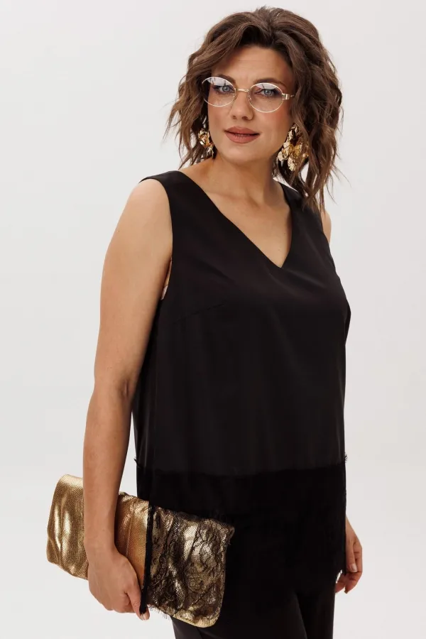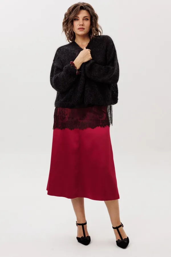 Но настоящая поэзия скрыта внизу: великолепное кружево, окаймляющее край, добавляет ноту романтики и загадочности. Он создан для того, чтобы его носить и как изюминку образа, кокетливо выглядывающую из-под строгого жакета или уютного свитера, и как самостоятельный акцент для особого случая.