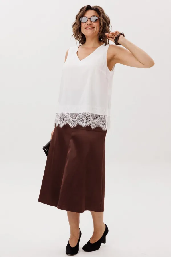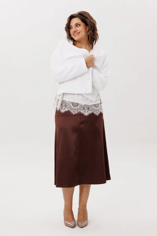 Но настоящая поэзия скрыта внизу: великолепное кружево, окаймляющее край, добавляет ноту романтики и загадочности. Он создан для того, чтобы его носить и как изюминку образа, кокетливо выглядывающую из-под строгого жакета или уютного свитера, и как самостоятельный акцент для особого случая.