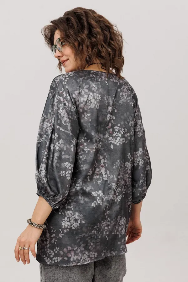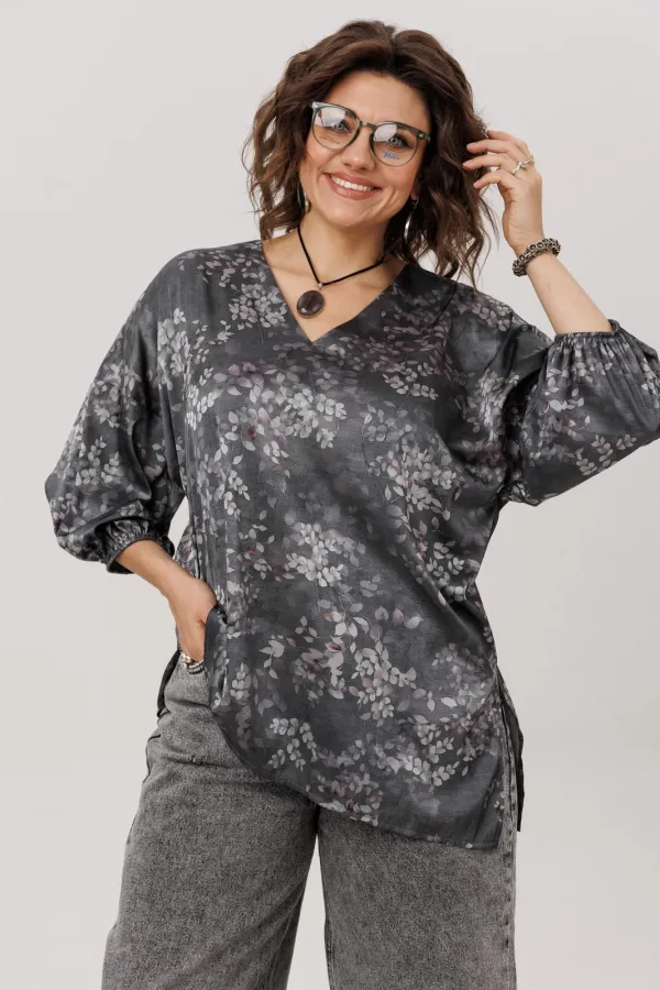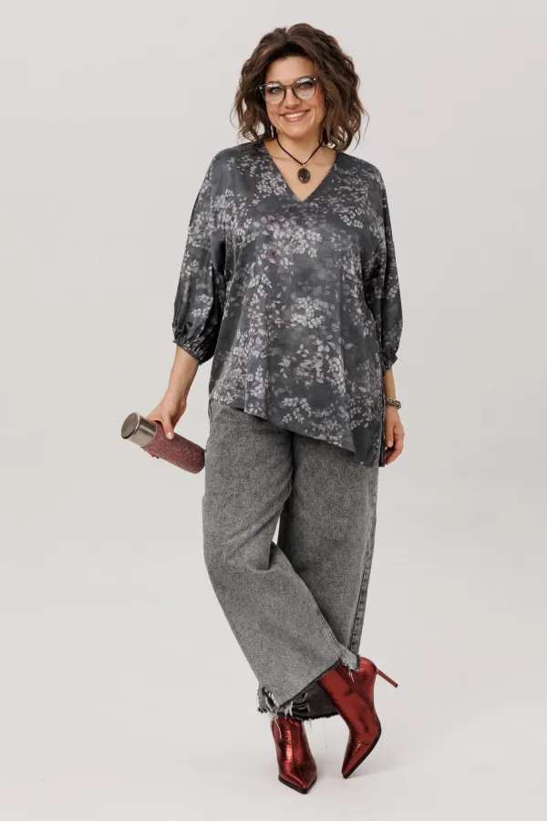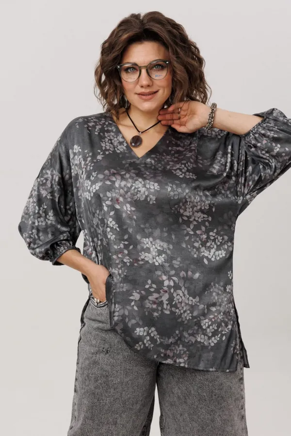 Этот блузон от Анелли в цвете «графитовый гербарий» создан для тех, кто ценит в вещах и стиль, и универсальность. Свободный крой и мягкая линия спущенного плеча дарят непревзойдённый комфорт, а элегантный V-вырез удлин... Читать далее...