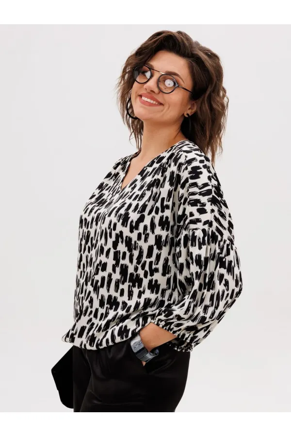 Но главная тайна этой модели скрыта в ее сердце — эластичная резинка, проходящая по всему низу блузы. Эта деталь полностью меняет правила игры. Теперь вы сами становитесь творцом своего образа: укоротите блузу для дерзкого современного вида или отпустите ее для струящегося, романтичного силуэта. Она послушно следует за вашим желанием, подстраиваясь под настроение и ситуацию.