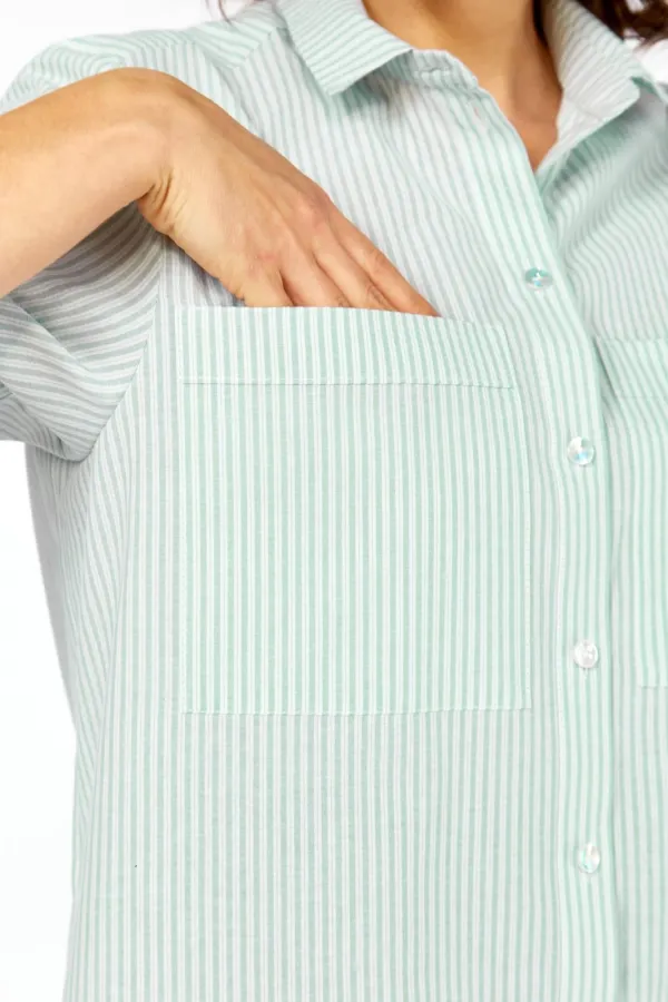 Рубашка свободного кроя, в стиле оверсайз. Силуэт свободный. На переде настрочены 2 кармана. По боковым швам разрезы. Рукав короткий. Плечо спущенное. Боковой сделан на 3см на запах,поэтому разрез не расходится.Длина по ... Читать далее...