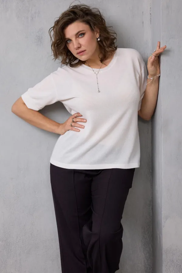 Хотите добавить в свой гардероб , которая будет одновременно комфортной и стильной? Эта трикотажная блуза с коротким рукавом – именно то, что Вам нужно! Нежный трикотаж окутает Вас мягкостью, а лаконичный крой с коротким рукавом подчеркнет вашу женственность. Модель станет универсальной основой для множества образов – от повседневных до более элегантных.
