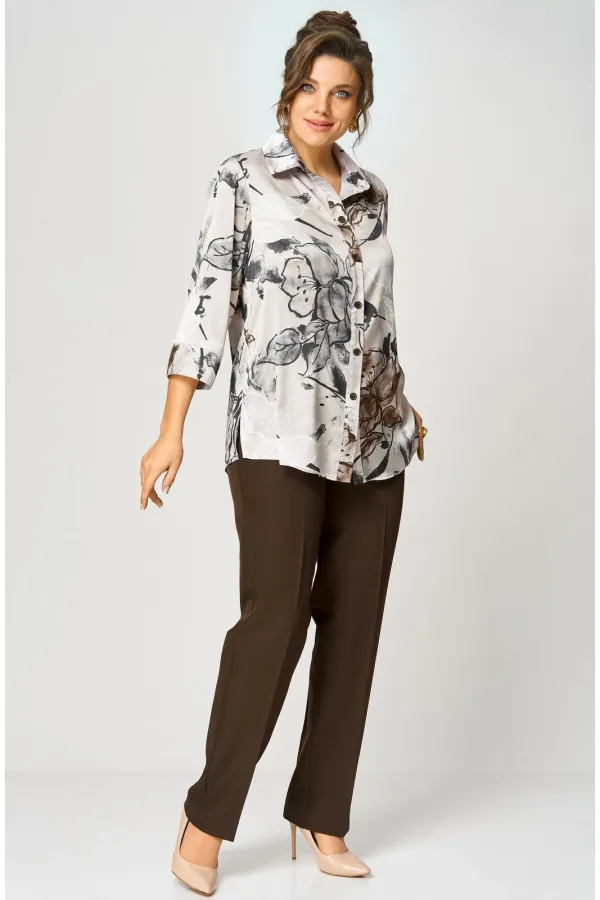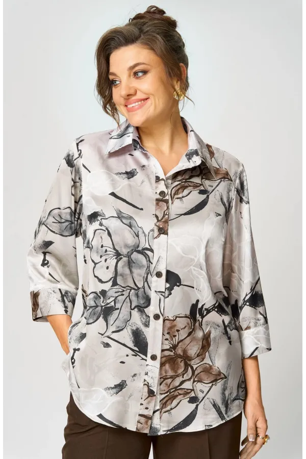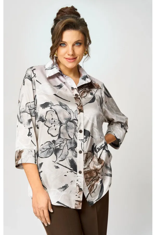Идеальная блуза для создания стильного базового гардероба.Прямой крой скроет недостатки фигуры и подарит комфорт в течение всего дня. Романтичные рукава 3/4 с манжетами подчеркнут изящество запястий, а элегантный отложной воротник завершит образ. Удобная застежка на пуговицы и боковые разрезы делают блузу невероятно удобной. Длина по спинке 74 см, длина рукава 45.