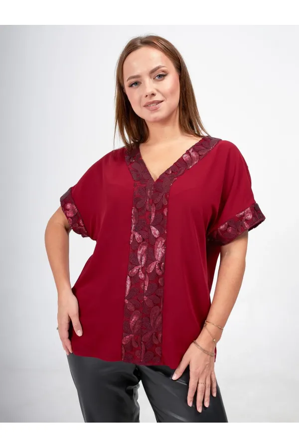 Особое внимание привлекает отделка из изысканного кружева с пайетками, которая добавляет блеска и утонченности. Эта блузка легко комбинируется с различными стилями одежды, будь то повседневный или более нарядный образ. Создайте свой уникальный стиль с этой великолепной блузкой, которая подчеркнёт вашу индивидуальность и сделает вас центром внимания!
