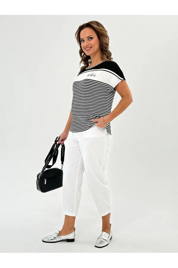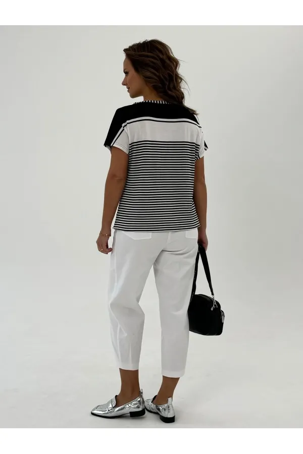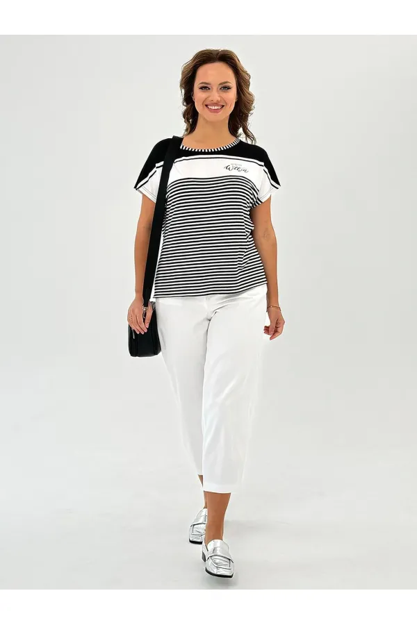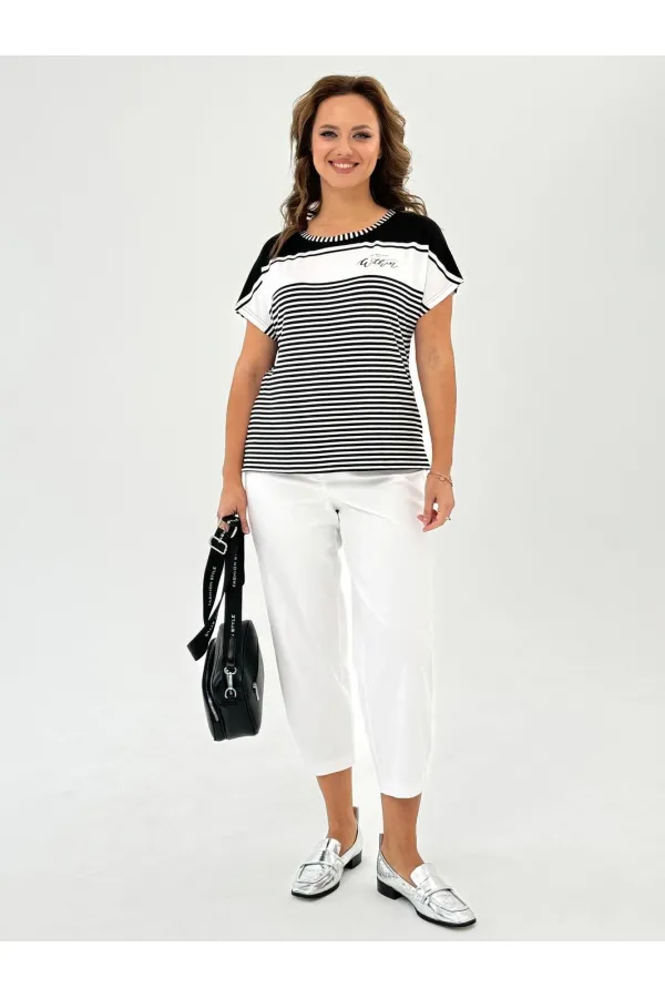 Данная футболка представляет собой свободную посадку и изготовлена из комфортного трикотажного вискозного полотна. Горловина имеет лодочку, что придает ей шик и элегантность. Короткий рукав цельновыкроенный, что обеспечи... Читать далее...