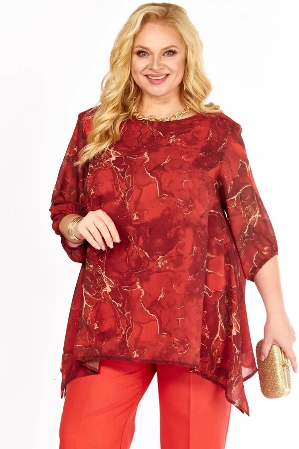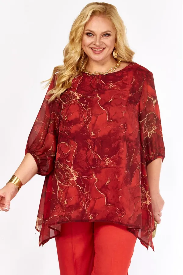 Блуза сводного кроя из принтованного шифона, что придает уникальность стилю своими красками. На полочке нагрудные вытачки, вырез горловины аккуратной округлой формы. Рукав втачной, свободный, низ присборен.... Читать далее...