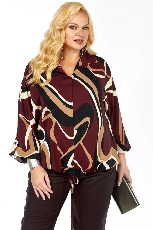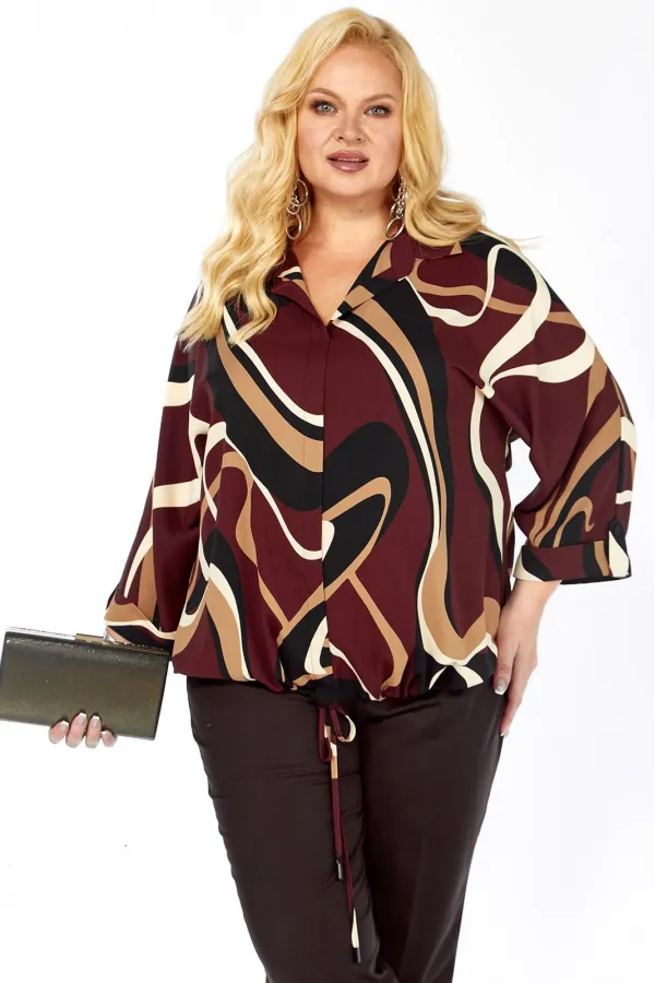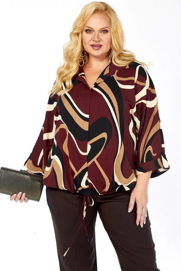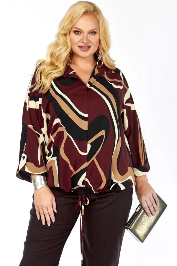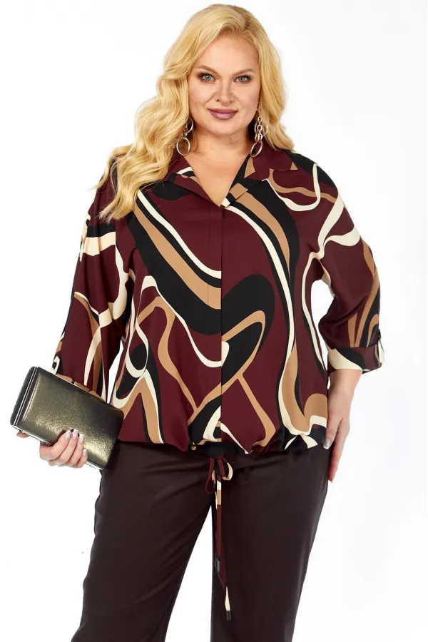 Блузка прямого силуэта из принтованной ткани с красивым цветовым