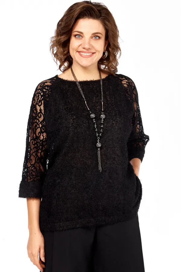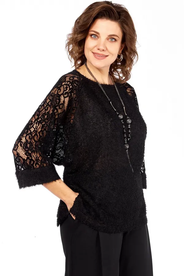 Праздничная элегантная блузка полуприлегающего силуэта, выглядит эффектно, прекрасно подойдет для вечерних мероприятий. Горловина аккуратной округлой формы. Рукав выполнен из мягкого кружева, что придает дополнительный ш... Читать далее...
