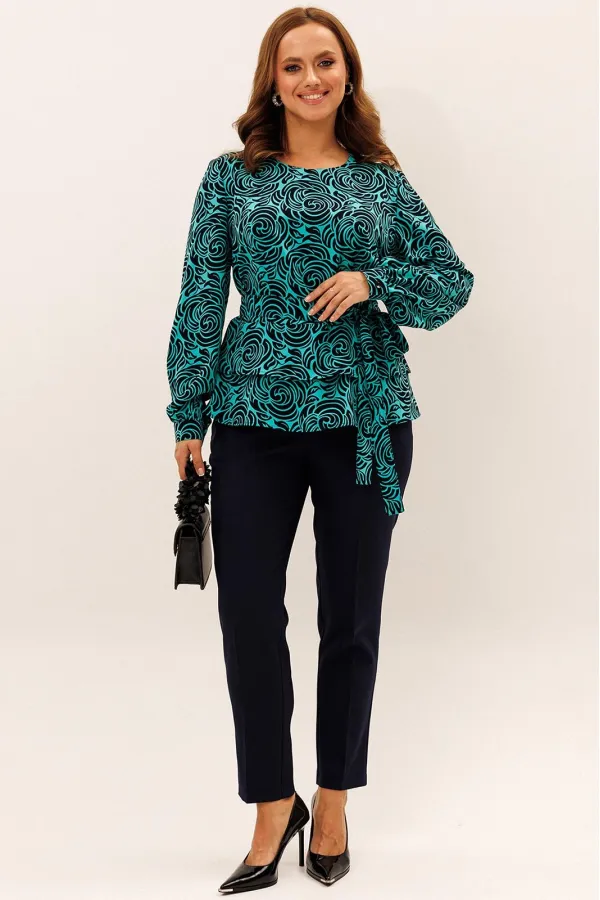 Блузка полуприталенного силуэта с отрезной баской по переду по линии талии. Перед с нагрудными и таллиевыми вытачками. Спинка с таллиевыми вытачками и средним швом в который вставлена потайная молния. Горловина округлой ... Читать далее...