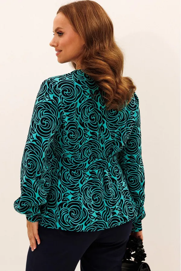 Блузка полуприталенного силуэта с отрезной баской по переду по линии талии.