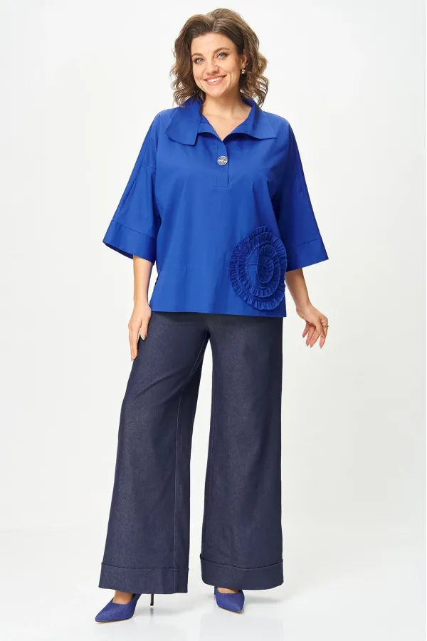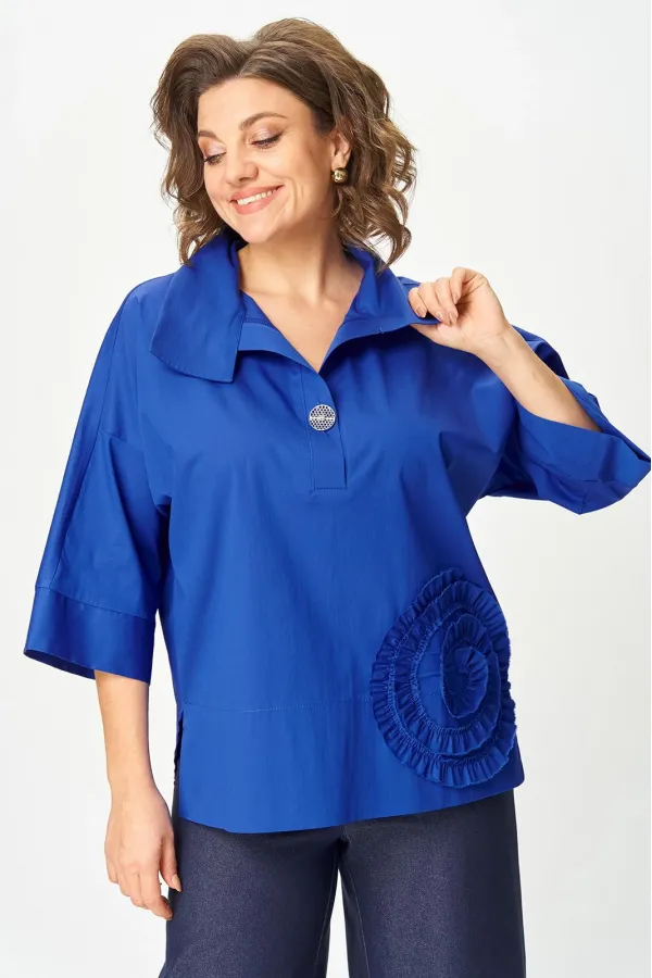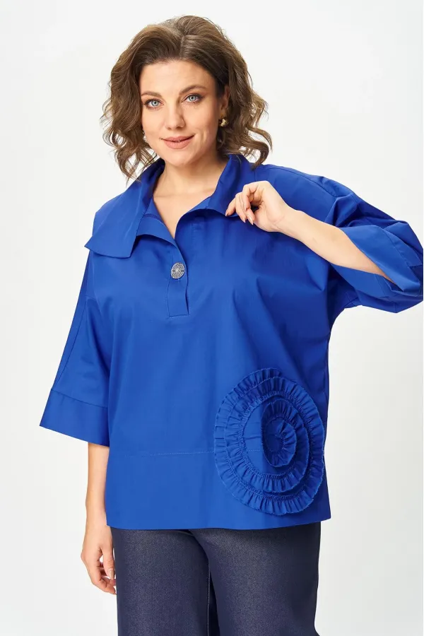 ◾В декоративных целях на левом боку переда размещен настрочный цветочный элемент из сетки, который придает блузке особый шарм и уникальность.