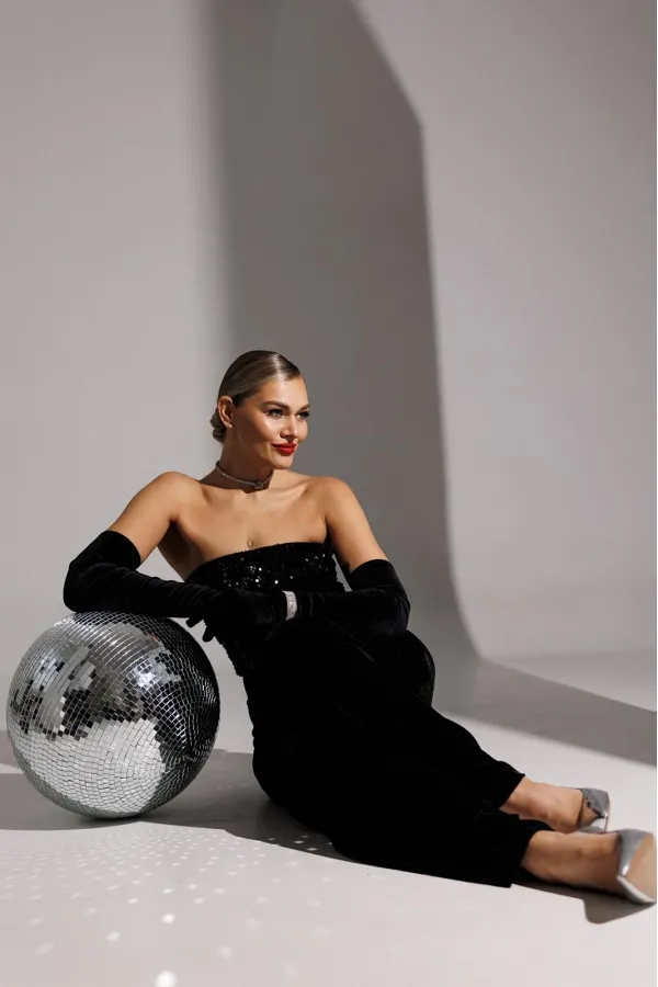 | Ткань | Полиэстер 95% спандекс 5% (пайетки на велюре). |