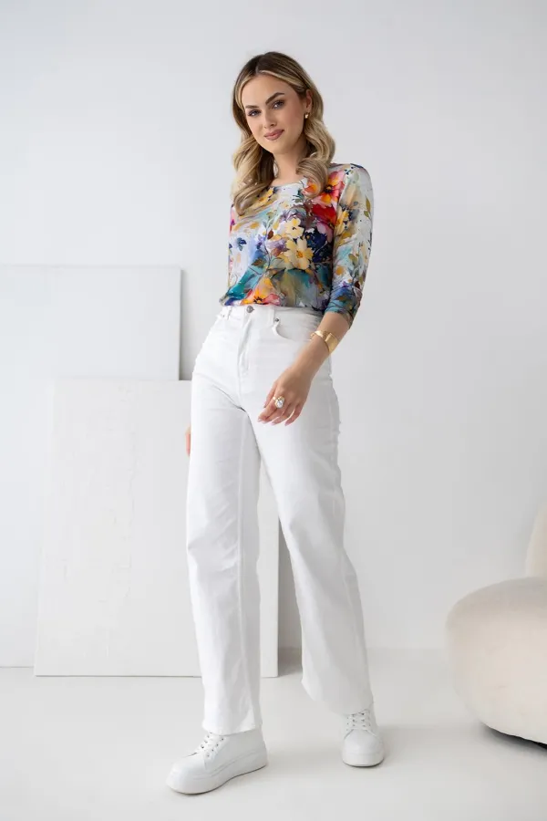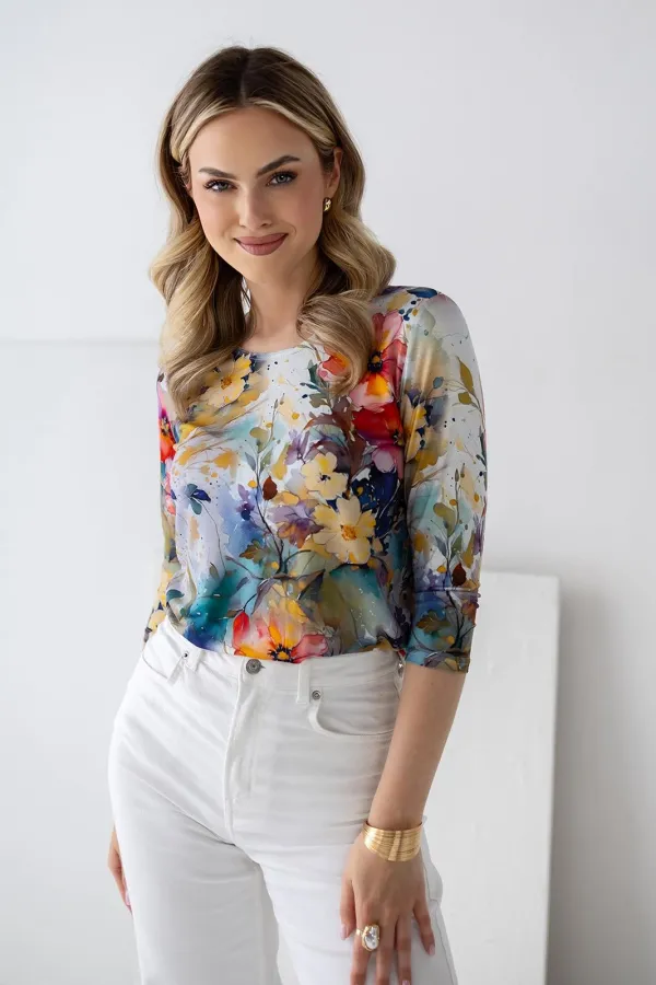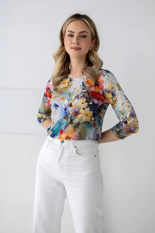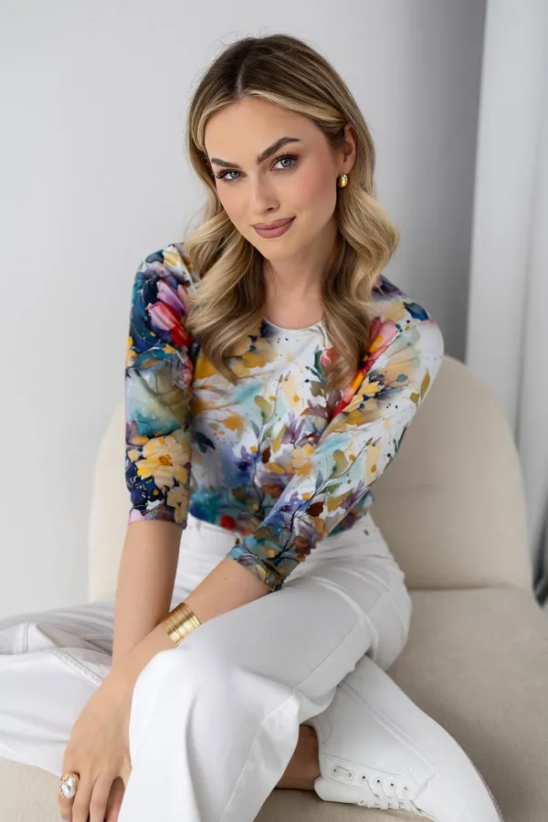 Футболка женская под джинсы повседневная из вискозы с эластаном от Nikapl из Польши. Лонгслив прямого силуэта с круглым вырезом горловины. Визуально удленяет шею. Рукава втачные, 3/4. Ткань вискоза с эластаном. Практичная. Яркие дизайны. Хороший пошив и посадка. Блузка из Польши сделана из приятной ткани и не принесёт дискомфорт в ее ношении. Качество пошива позволяет стирать ее в стиральной машине без усадки и расхождения швов. Блузки и рубашки женские это универсальные вещи, отлично подходящие для офиса, для праздника, для прогулки и на каждый день. Футболка женская большого размера будет прекрасно смотреться в комплекте с брюками классическими, джинсами большого размера и с юбкой, каждый раз помогая Вам создавать новый неповторимый образ. Практичная ткань, современный стиль, интересный дизайн, свободный покрой, широкий размерный ряд. Блузки и юбки бренда Nikapl из Польши.