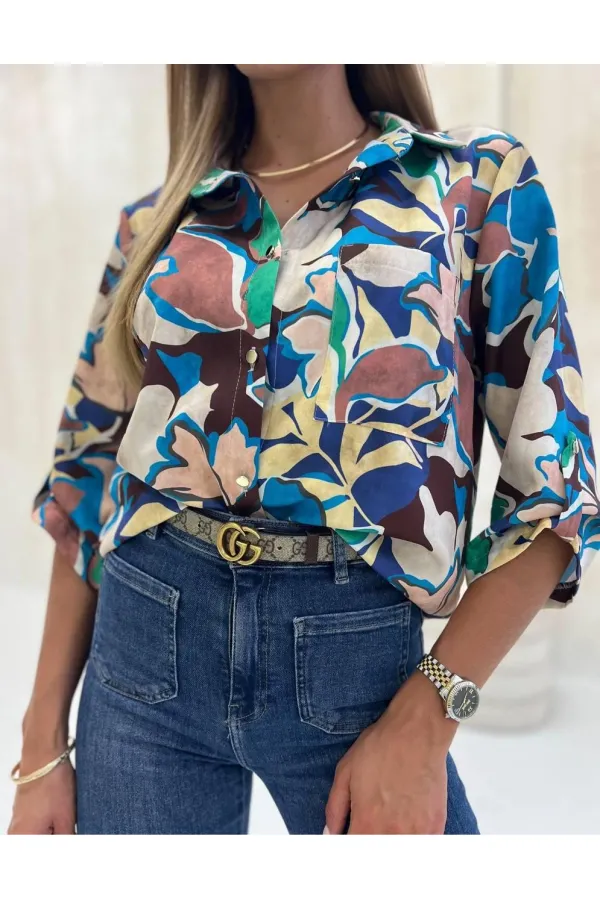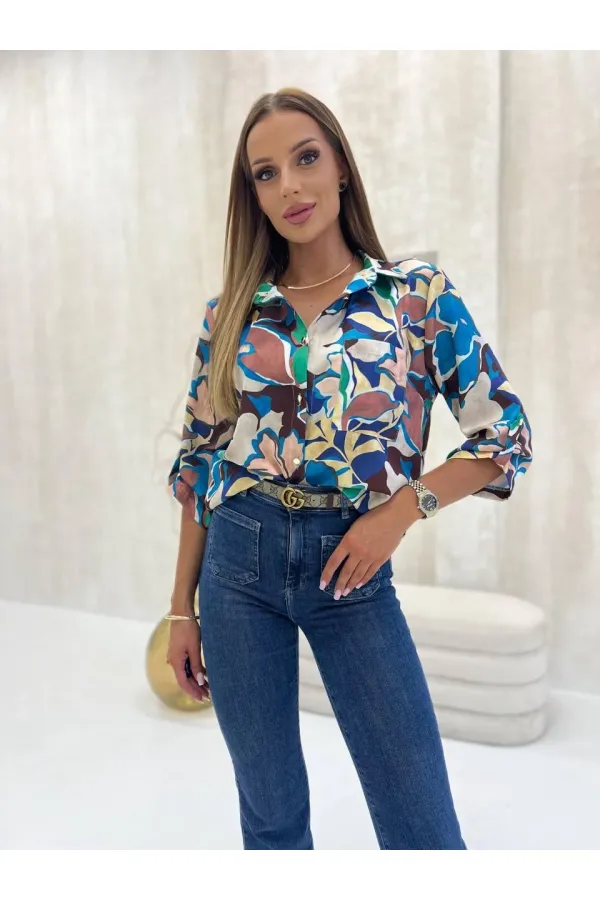 Блузка женская классическая свободная. Выполнена из приятного материала. Прямого свободного силуэта. Воротник рубашечного типа отложной. Рукава втачные 3/4 с манжетой и петлей и пуговицей, с возможностью регулировки. Зас... Читать далее...