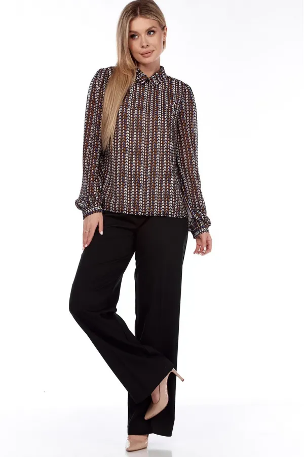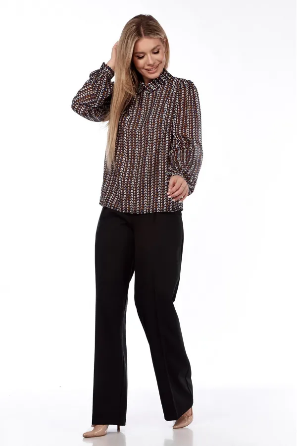 Стильная блузка офисного типа, прекрасно сочетается с брюками, юбками, жилетами. Модель полуприлегающего силуэта с воротником по горловине с застежкой каплей на одну пуговицу по спинке, по переду комбинированная ткань ... Читать далее...