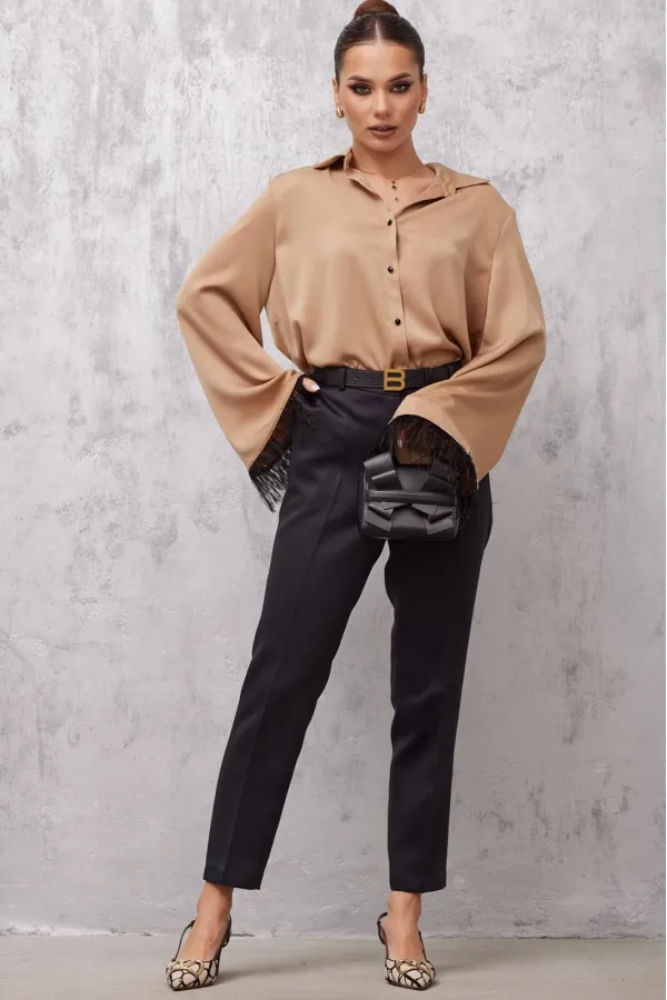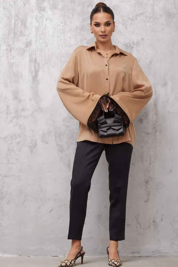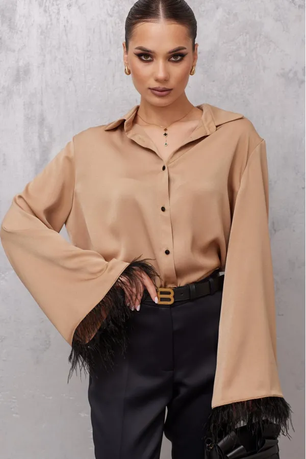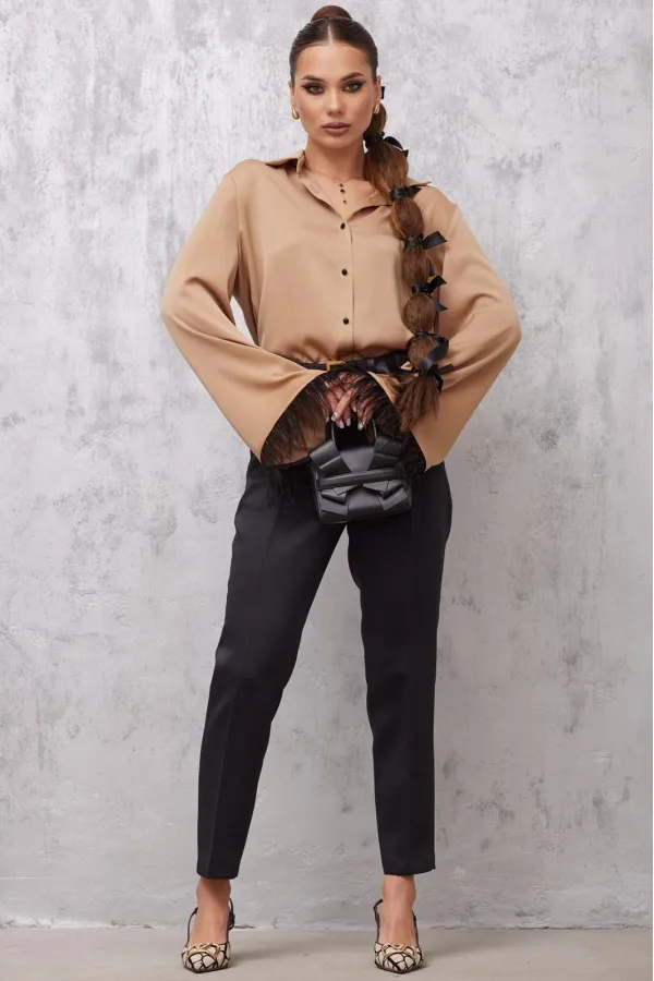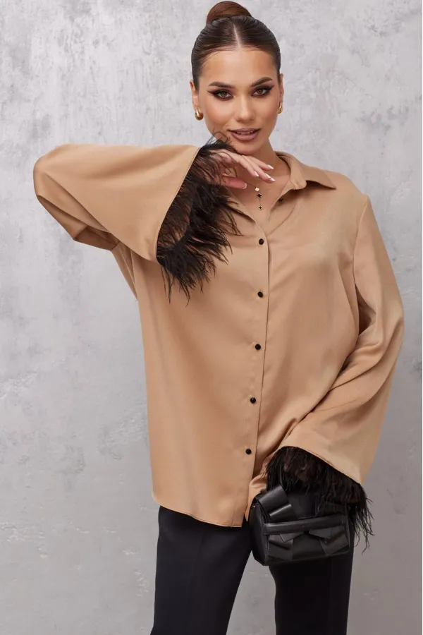 Воротник рубашечный. Рукав прямой, слегка расширен книзу. По низу рукава отделка «перья». По спинке
