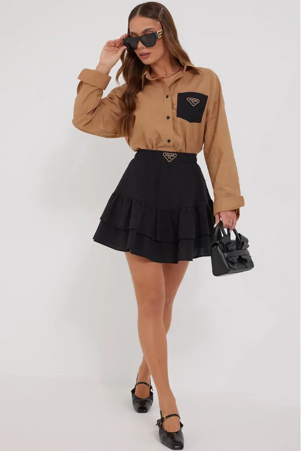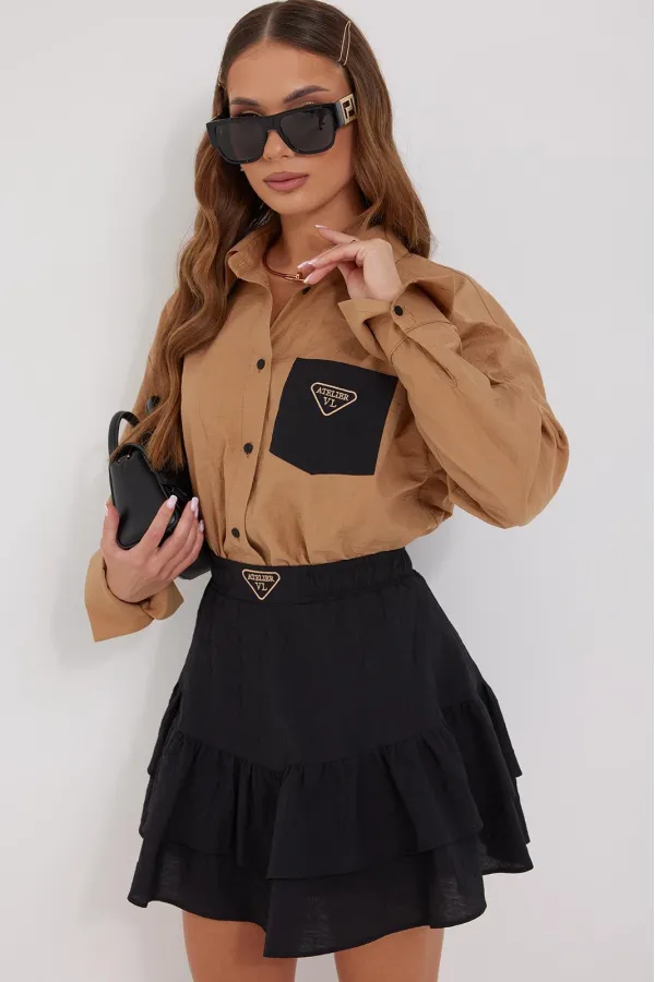 Блузка прямого силуэта. Застежка на петли и пуговицы. Воротник рубашечный. На полочке карман с вышивкой. Рукав прямой с манжетой понизу. Манжета с застежкой на петлю и пуговицу. В боковых швах разрезы.