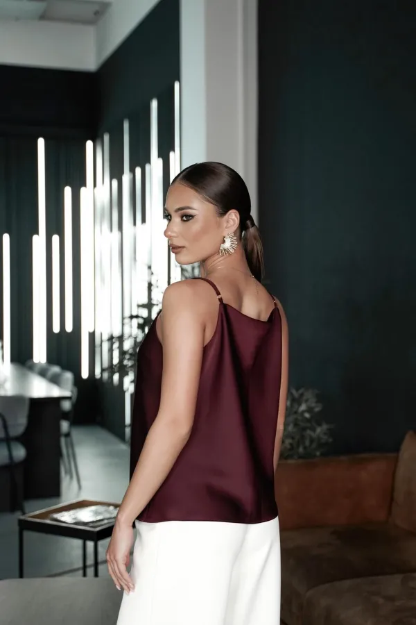 Атласная блузка-топ свободного силуэта на регулируемых бретелях. Блузка на атласной подкладке.