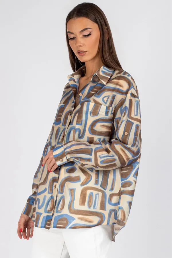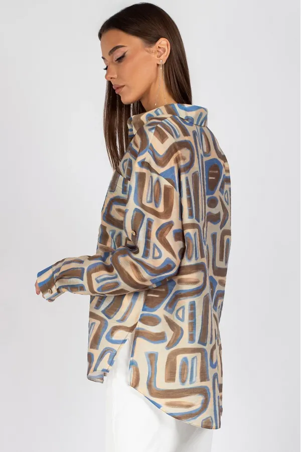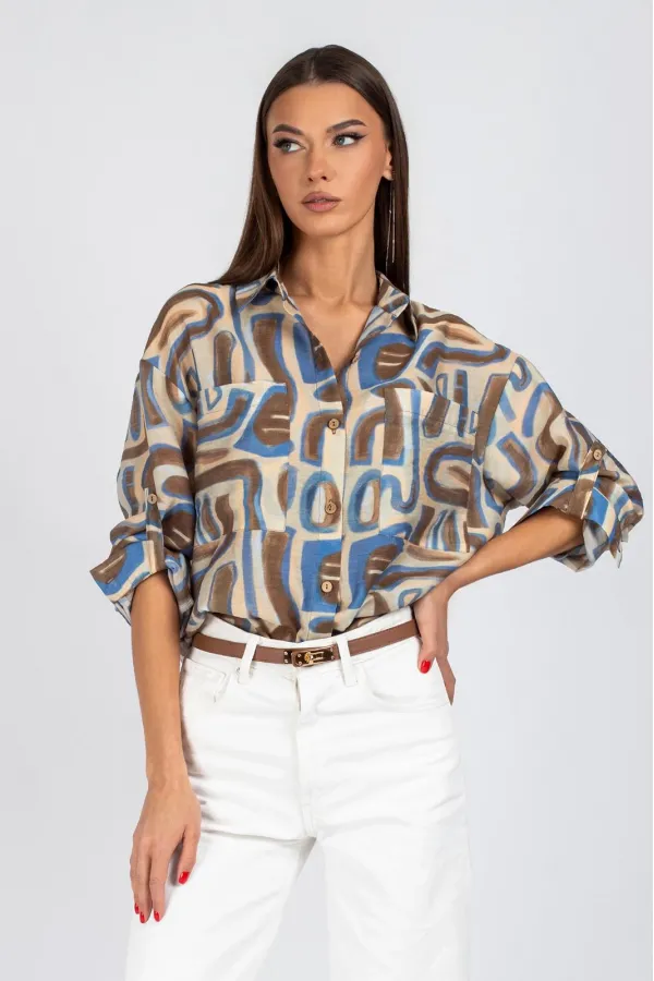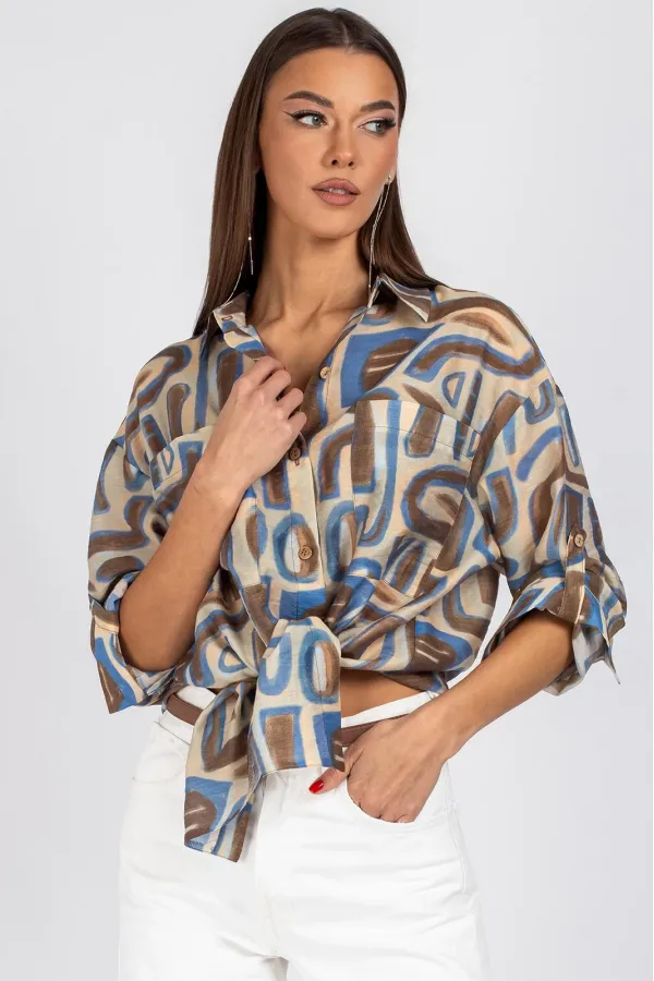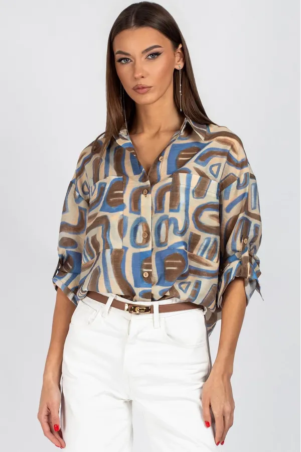 Блузка-рубашка женская, прямого силуэта со спущенным плечом.