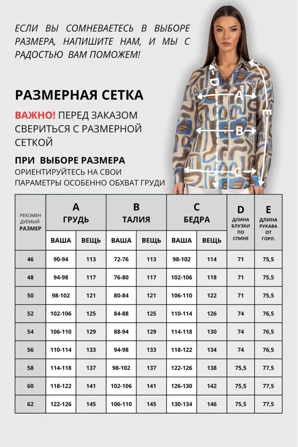 Блузка-рубашка женская, прямого силуэта со спущенным плечом. Передняя часть из двух частей, с центральной бортовой застежкой на 6 петель и пуговиц. На переде настрочены карманы. Спинка изделия цельная. Рукав с настроченн... Читать далее...