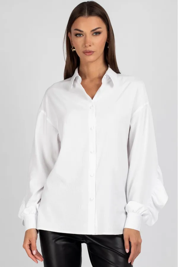 Женская блузка свободного прямого кроя O V E R S I Z E -силуэта со спущенной линией плеча — идеальный выбор для создания актуального и непринужденного образа.