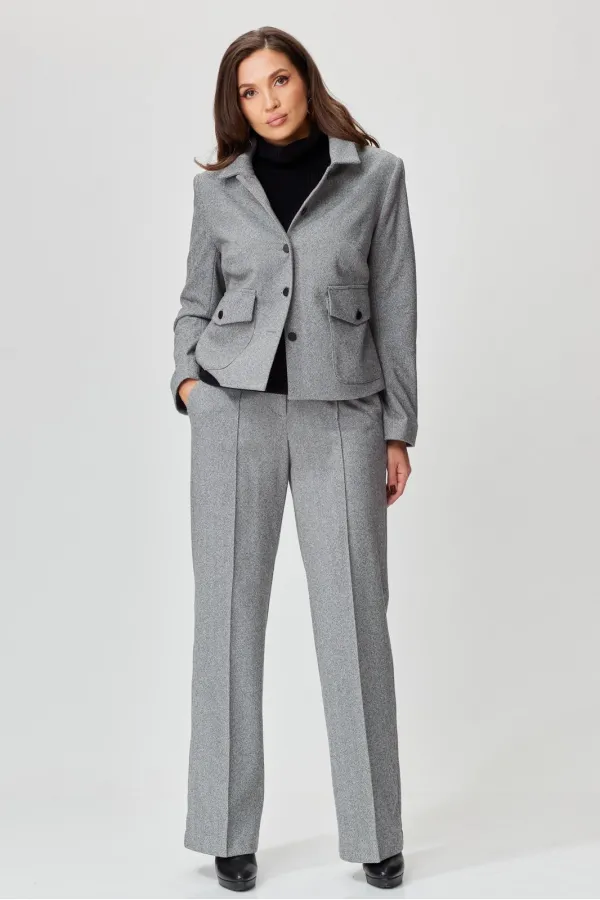 Брюки прямые палаццо, по переду с карманами, с застежкой на тесьму-молнию, задние половинки с талевыми вытачками. Изделие на поясе с эластичной резинкой сзади