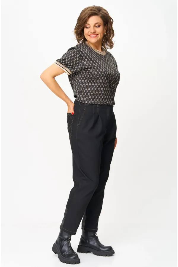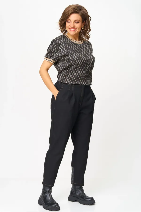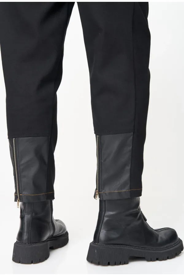 Джинсы мом с высокой посадкой - это идеальный выбор для женщин, ищущих комфорт и стиль в повседневной жизни, на работе. Брюки изготовлены из высококачественного смесового хлопка, обеспечивают идеальный баланс между удобством и прочностью. Модель с высокой посадкой, сзади с накладными карманами с отделкой и боковыми наклонными спереди. Вставки из экокожи с молниями по задним половинкам брюк внизу придают функциональности. Брюки на притачном поясе частично с резинкой.
