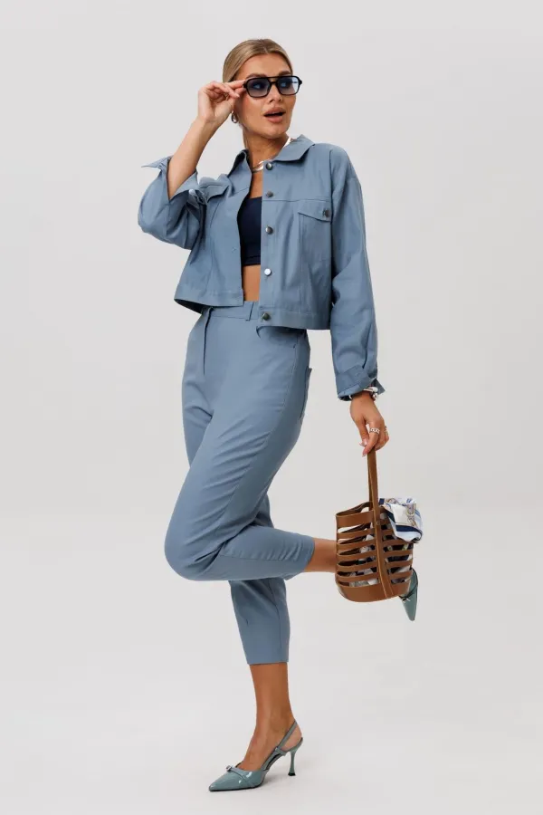Брюки от Анелли в цвете «горная роса» с высокой посадкой и длиной до середины щиколотки мягко заужаются к низу, создавая современный и выигрышный силуэт. Спереди расположены карманы, а застёжка-гульфик на молнии и пояс с кнопкой обеспечивают удобство. Спинка оформлена фигурной кокеткой и настрочными карманами. Резинка на поясе по спинке гарантирует идеальную посадку.