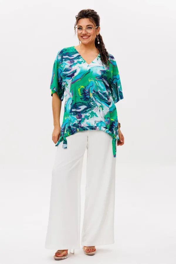 На модели блуза 1606, 1606.1 и 1606.2.Размер 52: ОТ-85; ОБ-116; ДИ-109; ширина внизу - 65;