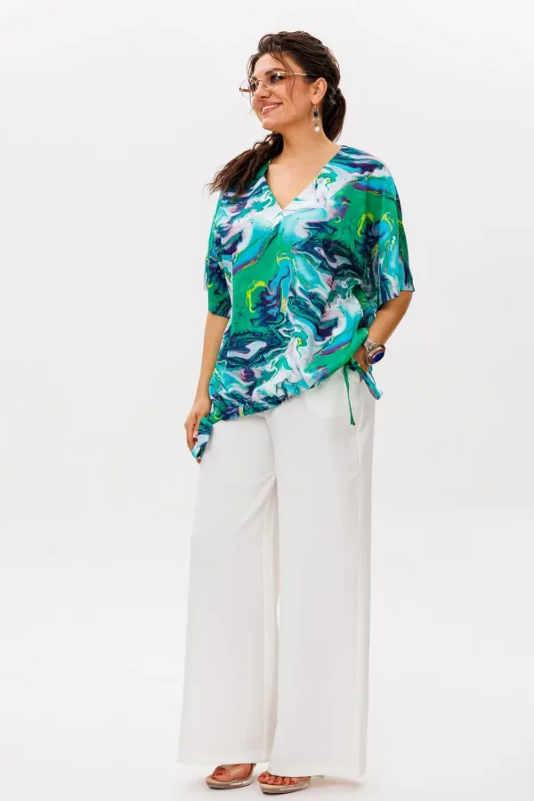 Мягкая, струящаяся ткань обволакивает кожу, даря ощущение комфорта даже в самый жаркий день. Эластичная резинка на поясе обеспечивает идеальную посадку, подстраиваясь под изгибы тела без стеснения движений. Удобные карманы деликатно встроенные в силуэт, добавляют практичности и удобства.