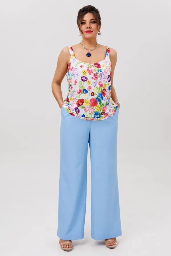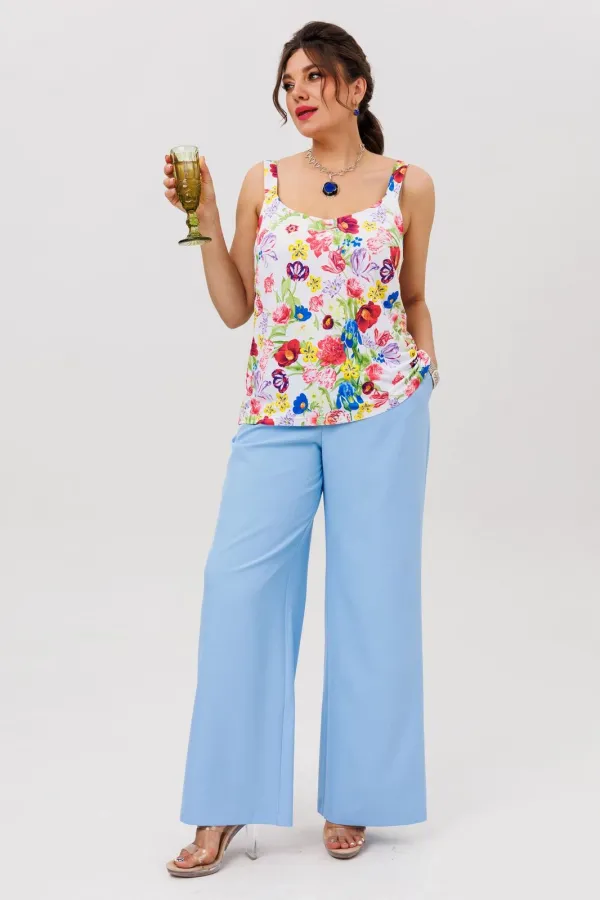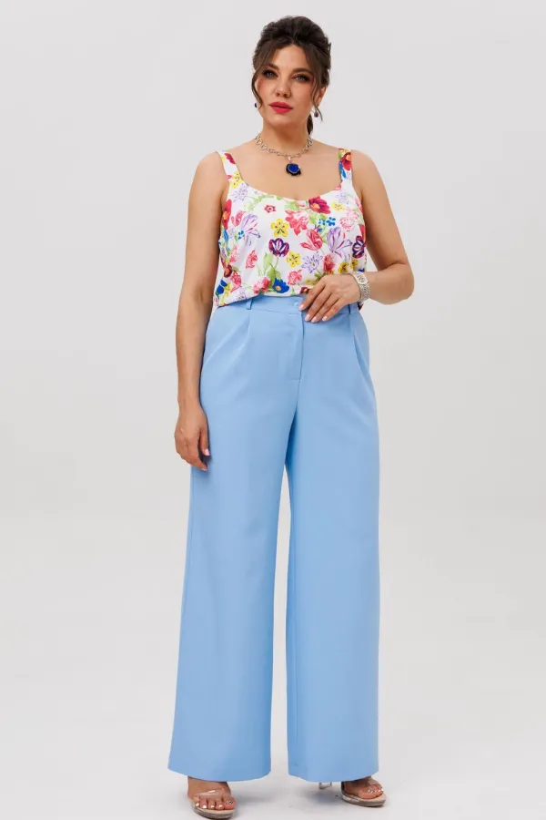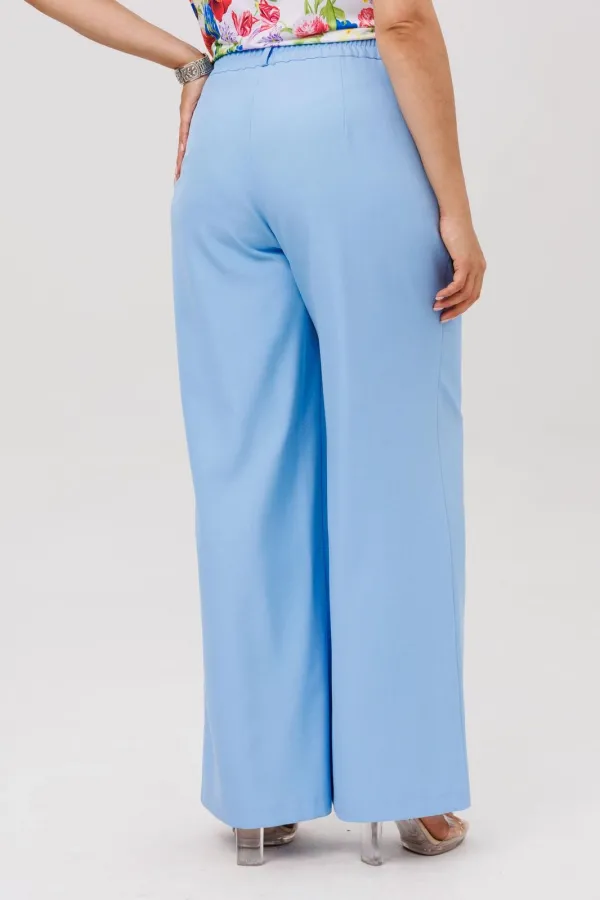 Эти брюки в нежном цвете «голубая гортензия» станут вашим незаменимым выбором как для повседневных образов, так и для особых случаев. Они могут быть стильно сочетаемыми с топами, блузами и обувью разных стилей, подчеркивая вашу индивидуальность и женственность.