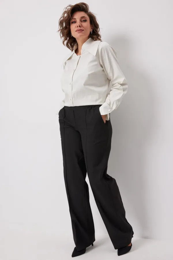 Все мы мечтаем об удобных базовых брюках, которые будут стройнить, вытянут силуэт, идеально подойдут ко всем предметам нашего гардероба. Всё это мы воплотили в наших прямых брюках со средней посадкой из мягкого, растяжимого джинса, который подарит невероятный комфорт в носке. Застроченные стрелки сделают Ваши ножки бесконечно длинными. Брюки с лёгкостью позволят создавать множество образов как элегантных – с блузой, жакетом и лодочками, так и спортивных - с любимой футболкой, худи и кедами. Модель изумительно стройнит и вытягивает силуэт благодаря выверенным лекалам и отличной посадке.