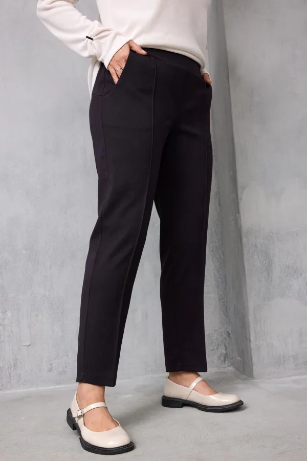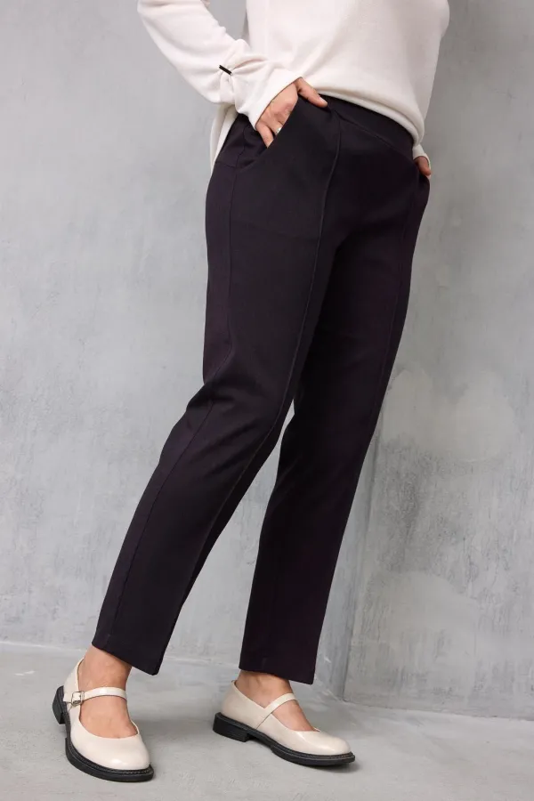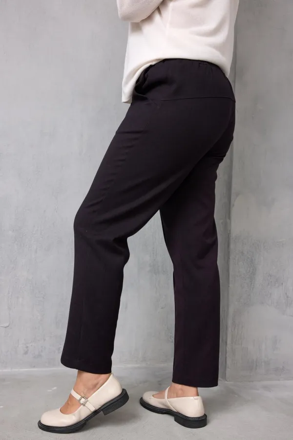 Классические брюки полуприлегающего силуэта выполнены из тактильно приятного слегка растяжимого текстиля, который Вам подарит невероятный комфорт! Красивая расцветка «чёрный баклажан» добавит образу изысканность и шарм. Модель прекрасно держит форму, стройнит и вытягивает силуэт, а застроченные стрелки визуально добавляют ножкам несколько сантиметров. Брюки с лёгкостью позволят создавать множество образов как элегантных – с блузой, жакетом и лодочками, так и спортивных - с любимой футболкой, худи и кедами.