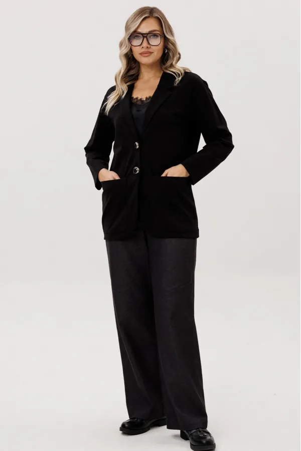 Брюки широкие,средней посадки, с карманами. Пояс частично на резинке.