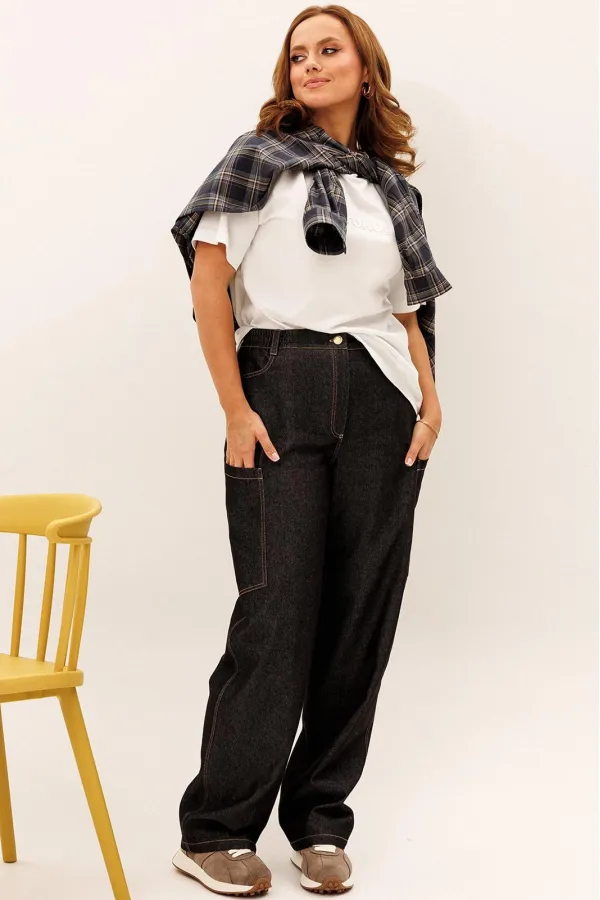Джинсы свободного кроя с объёмом в области бёдер и ног, которые сужаются к низу что делает их более аккуратными и удобными. Джинсы на притачном поясе, от середины передних половинок и по спинке на резинке. Имеются шлёвки... Читать далее...