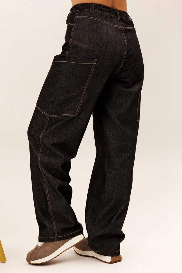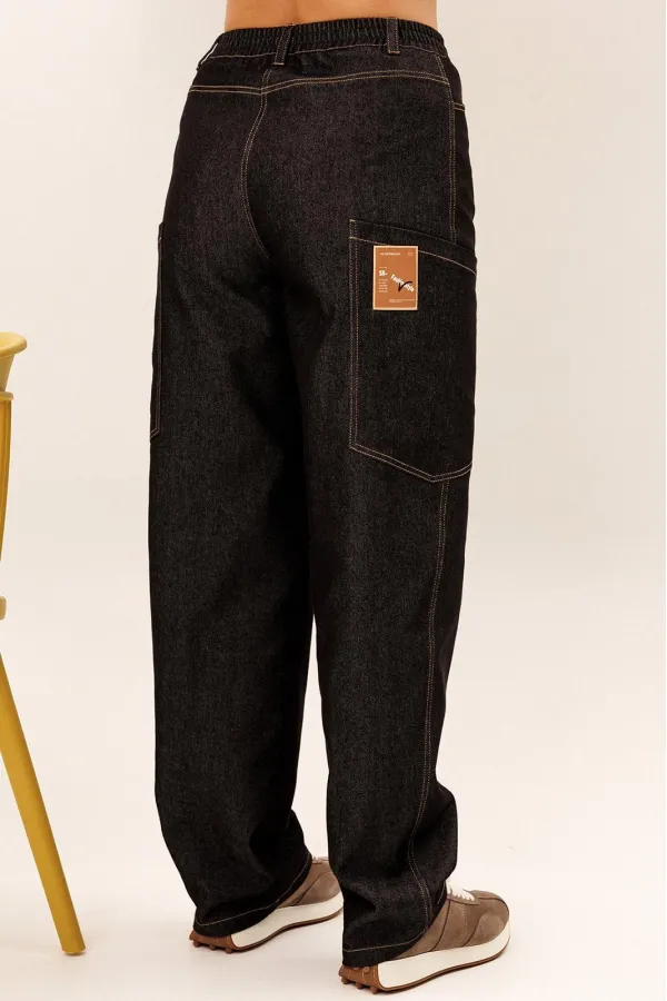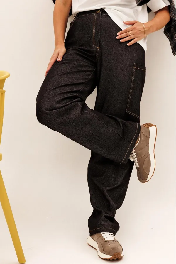 Джинсы свободного кроя с объёмом в области бёдер и ног, которые сужаются к