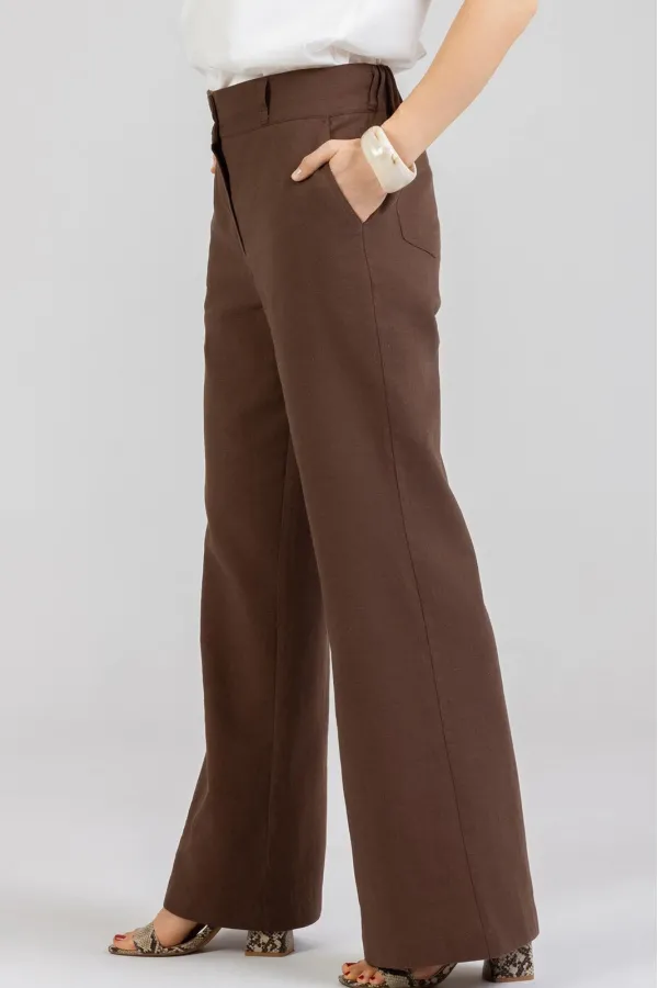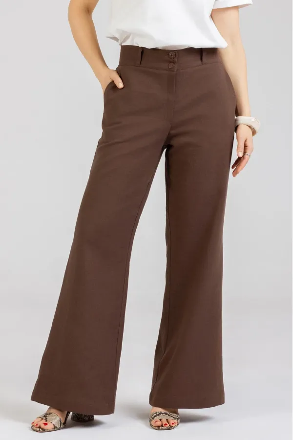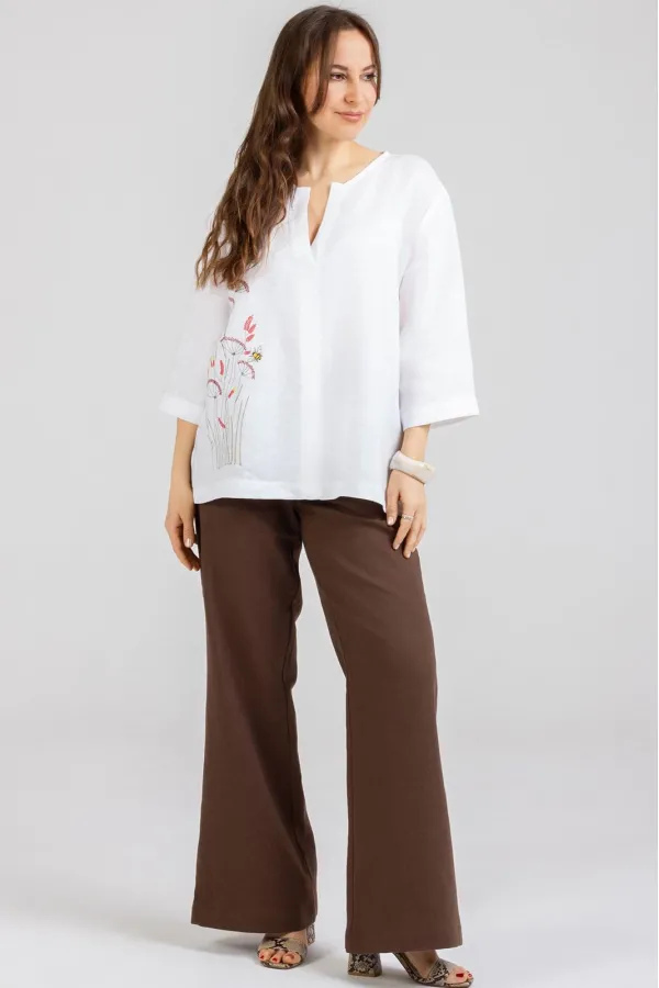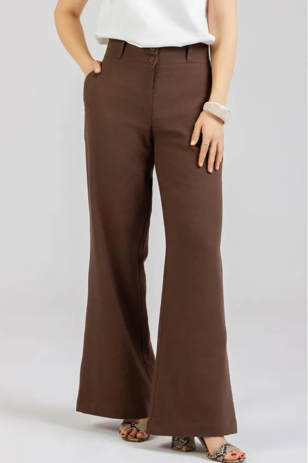 Стильные Брюки -Клёш изготовлены из качественного натурального льна с эффектом мятости. Брюки летнего ассортимента, свободные от бедра . По переду внутренние карманы. Сзади накладные карманы. Очень удобные. Застёгиваются спереди на молнию и 2 пуговицы. В задней части пояса вставлена резинка. Посадка: высокая . Длина брюк по боковому шву с поясом 110-112 см . Длина пояса ( резинка в растянутом виде): 46 р.-84 см, 48 р.-86 см, 50 р.-91 см, 52 р-95 см, 54 р-100 см, 56р-104 см