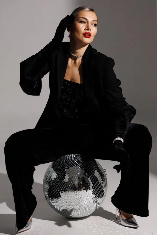 Создайте безупречный новогодний гардероб вокруг наших велюровых брюк.