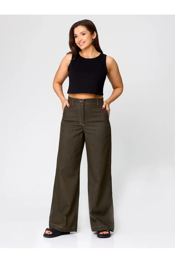 Брюки женские, клеш от бедра с высокой посадкой. Если вы хотите ультрасовременный винтажный стиль, то эти брюки палаццо идеально подойдут для вас. Изготовленные из высококачественного материала, они идеально садятся по фигуре, придавая вам непревзойденный комфорт и свободу движений. Брюки женские являются универсальной вещью, которую можно носить и комбинировать со многими вещами, к ним можно подобрать любую обувь от кроссовок до каблуков. Молодежная модель с карманами для городских уличных осенних образов позволит быть модной. При подборе необходимого размера, используйте таблицу обмерных данных в готовом виде, предоставленной на фото. Чтобы перейти в общий каталог моделей, нажмите на иконку бренда в карточке товара. Все изделия производятся в Республике Беларусь на собственной фабрике. Мы будем рады вашим отзывам и рекомендациям, благодаря им мы становимся лучше! Спасибо, что выбираете Zlata!