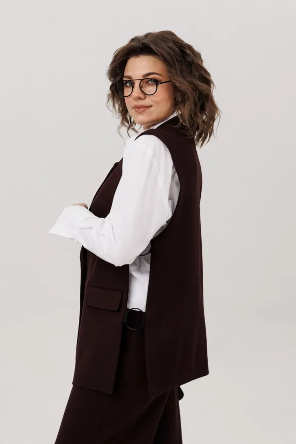 Этот элегантный трикотажный жилет, получивший гордое имя «хранитель колец», станет ключевым элементом вашего гардероба. Его строгий прямой силуэт и подкладка обеспечивают безупречную посадку, а пиджачный воротник с отложными лацканами придает образу солидность и завершенность.